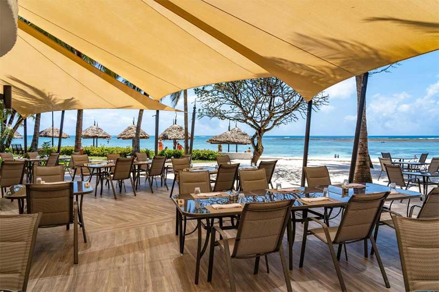 Nestled beneath a grand makuti canopy, Palms Restaurant offers a cool, open-air dining experience. Guests can indulge in buffet-style meals featuring a blend of African, Indian, and European dishes for breakfast, lunch, and dinner. With live grill stations and dedicated African, Indian, and Pasta corners, diners can explore a variety of gourmet flavors and discover local ingredients that celebrate the region’s rich culinary traditions.