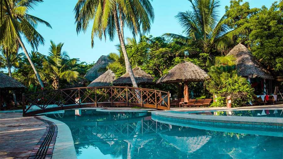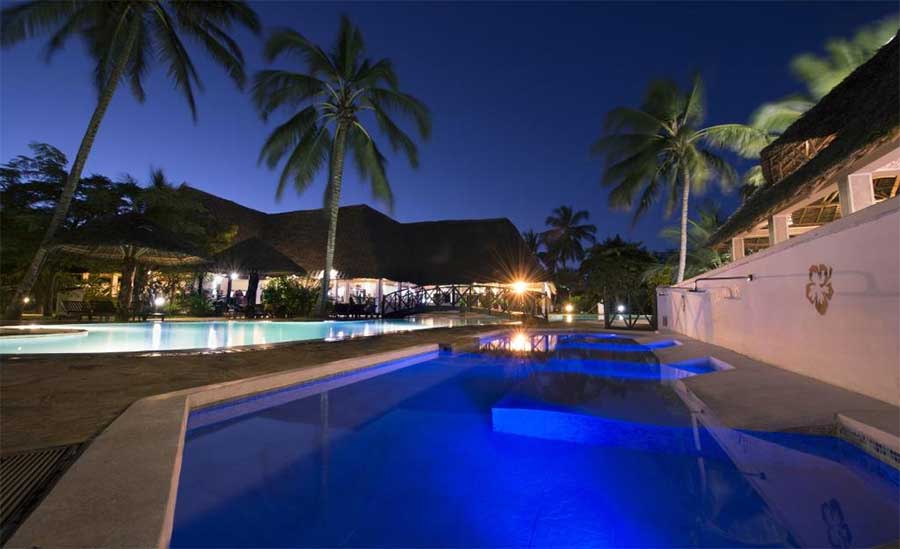 The Rafiki and Pwani bars, with Pwani situated on the beach, offer a variety of beverages including cocktails, soft drinks, local spirits, coffee, ice cream, and fresh fruit juices.