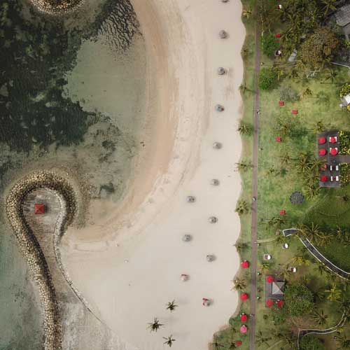 Nusa Dua, the capital of Bali's province, is located about 40 kilometers from Denpasar. Known for its white sands, deep waters, and extensive, safe beaches, this serene area is a peaceful retreat for travelers. Developed as a luxury enclave, Nusa Dua boasts world-class hotels, renowned spas, and a convention center, making it a premier destination for international visitors seeking exclusivity and beautiful scenery.